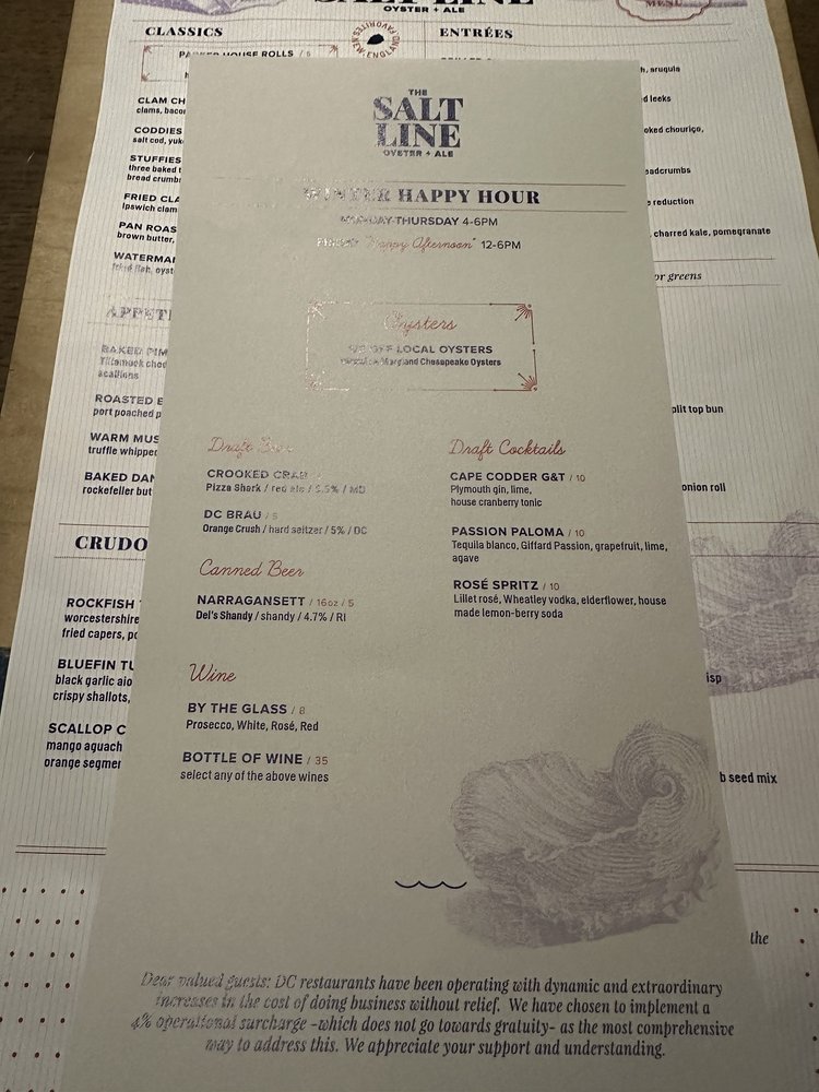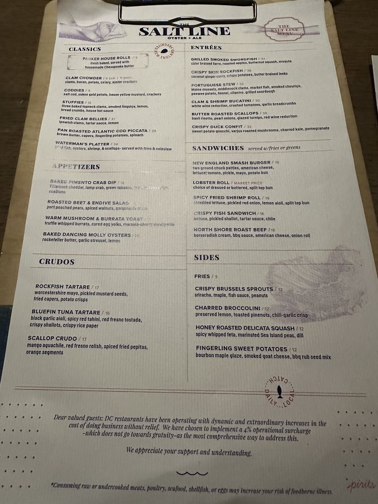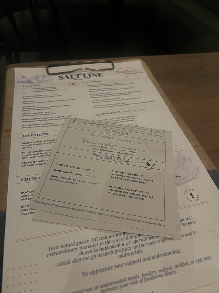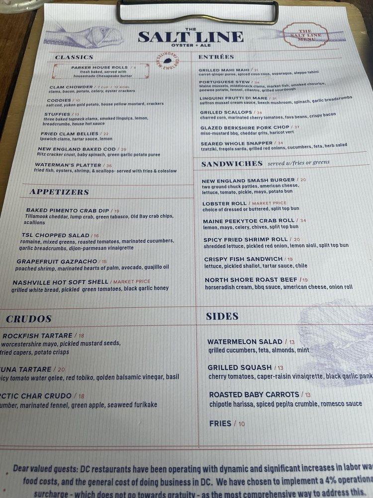 Discover the trendy and casual waterfront dining experience at The Salt Line. With a menu boasting exquisite seafood options, including briny oysters and perfectly cooked scallops, this restaurant is a seafood lover's paradise. The attentive service and top-notch ambiance make for a memorable dining experience, whether you're on a date night or enjoying a meal with friends. The location at 79 Potomac Ave SE offers easy accessibility and ample parking options. Don't miss out on the chance to indulge in delectable dishes while taking in the beautiful waterfront views. The Salt Line truly stands out as a must-visit restaurant in Washington, DC.